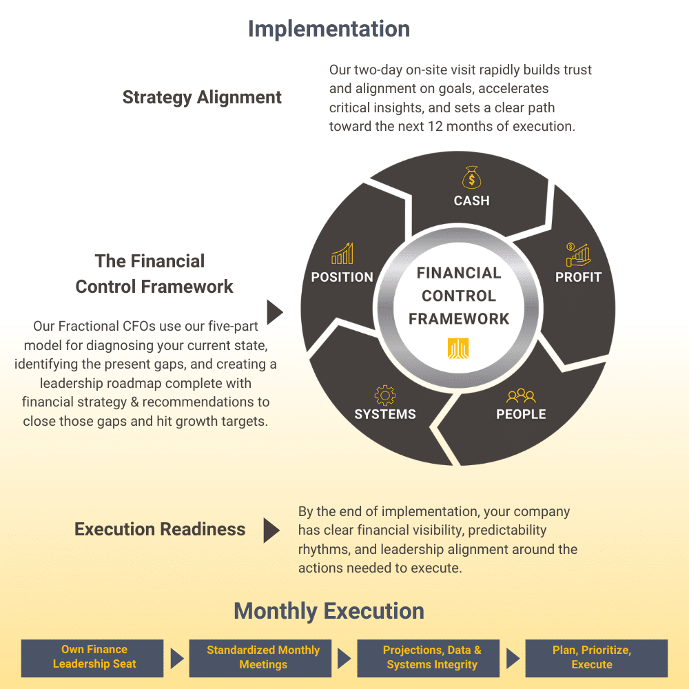 Then we build the operating structure around forecasting, reporting, and accountability. Financial rhythms become consistent. Leadership gains shared understanding.